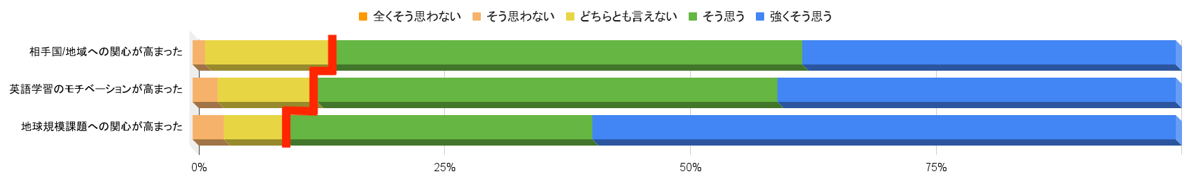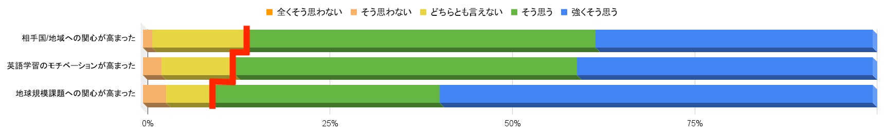 ⚫︎86% の生徒が「相手国/地域への関心が高まった」と回答