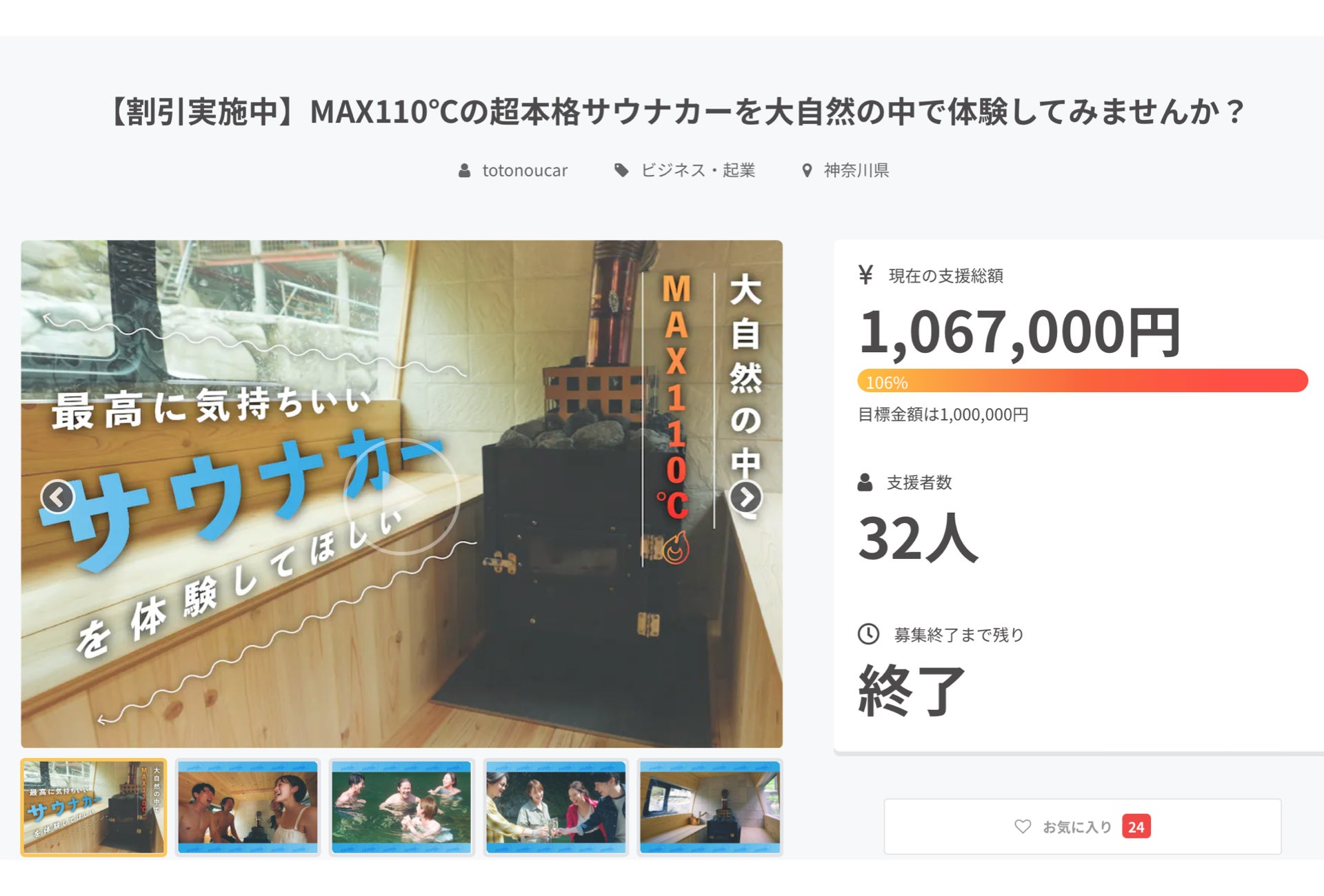 2022年8月12日~9月18日に「CAMPFIRE」にて開始されたクラウドファンディングでは、目標額である100万円を達成。サービス提供前にも関わらずサウナ関連の各種SNSで取り上げられるなど、注目を集めています。