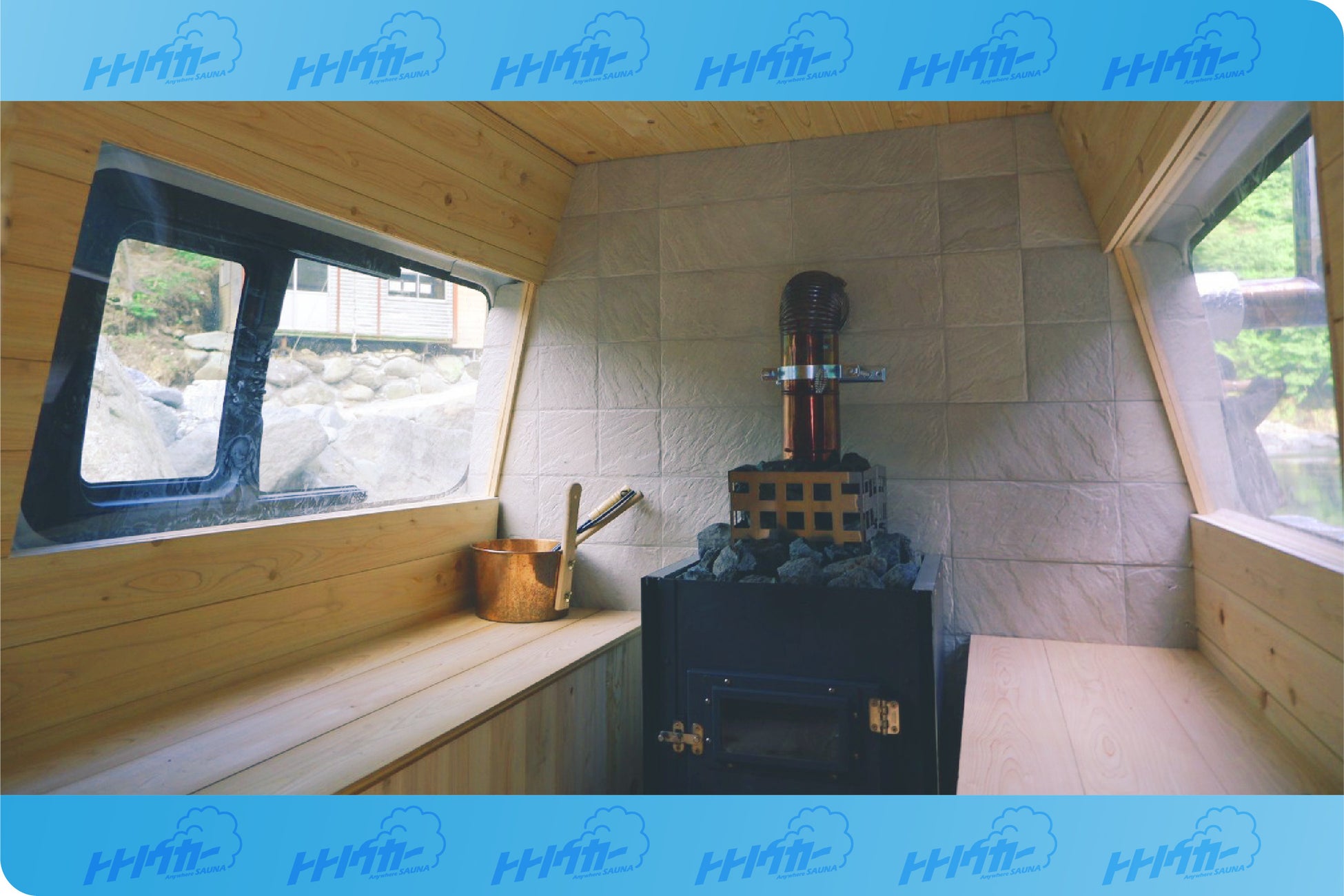 銭湯のサウナよりも天井が低いことから車内に熱が広がりやすく、高温好きの上級者サウナーも満足の本格的な薪サウナを実現しました。