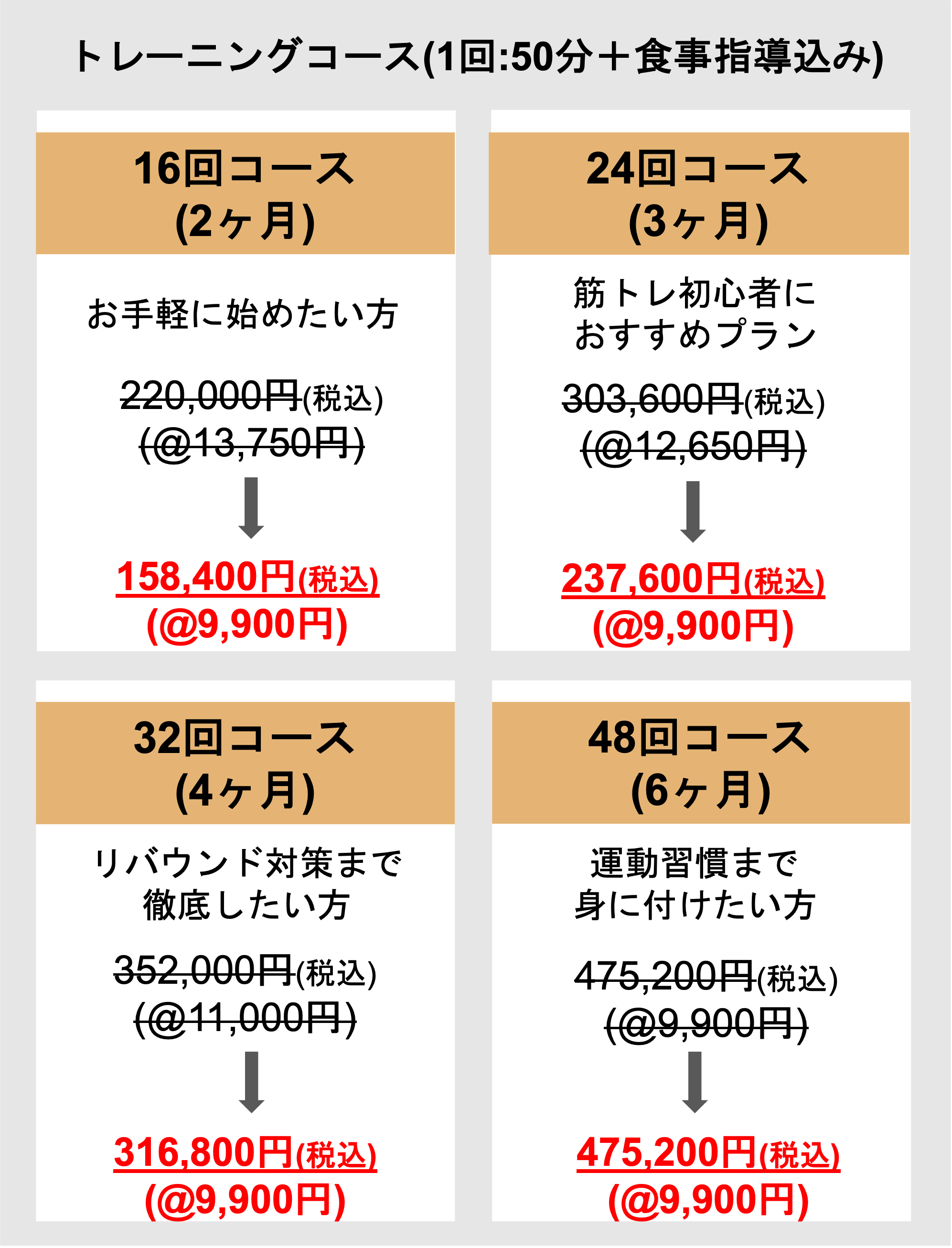 | 短期集中バルクアップコース48回 | 475,200円 |