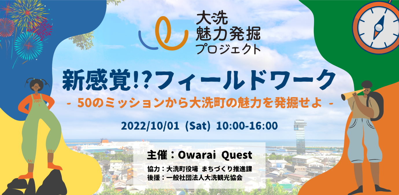 第3弾となる今回のイベントは「大洗魅力発掘プロジェクト」の一環として、大洗町の魅力を50のミッションから発掘するフィールドワークを2022年10月1日(土)に開催します。