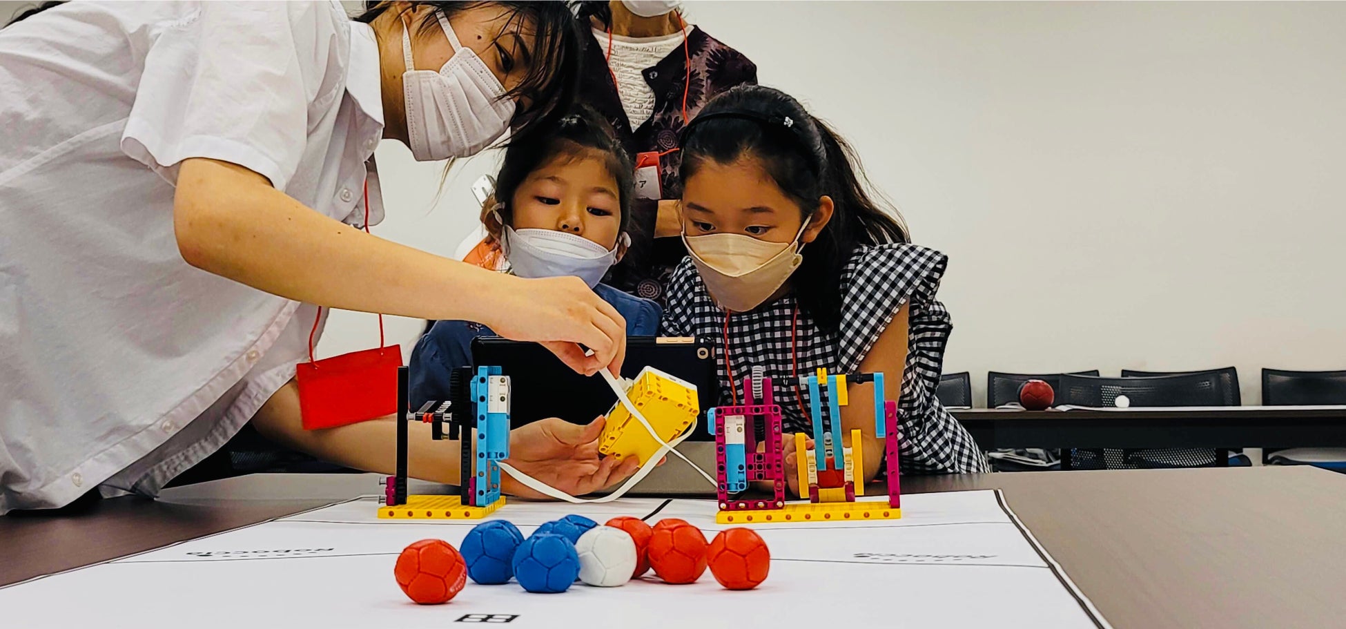 当⽇は、8人の子どもが参加し、プログラミングやロボットのビルディングを体験。