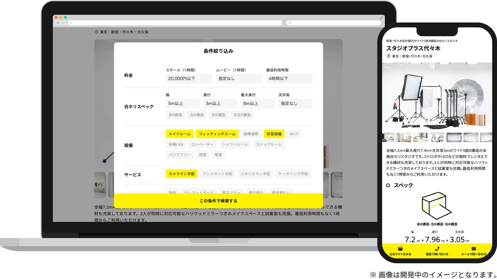 それにより、制作会社やクリエイターの方々が、条件にあった白ホリスタジオを簡単に見つけられるようになっています。