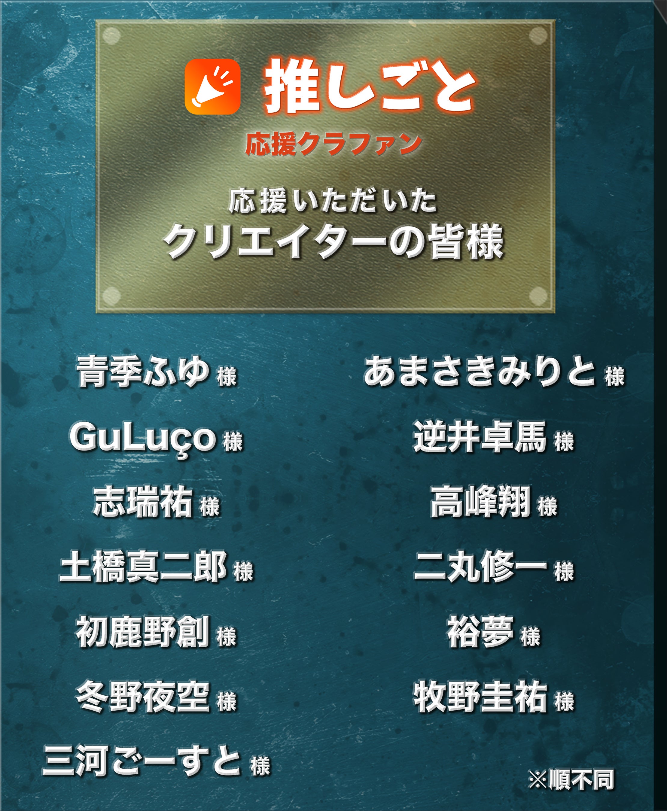 - 重大発表④:アプリリリース決定を記念し、クリエイターの皆様からのお祝い