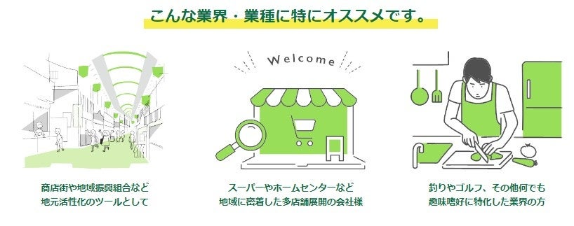 お客様との関係性を築きたい地域密着型の店舗や商店街におすすめです。
