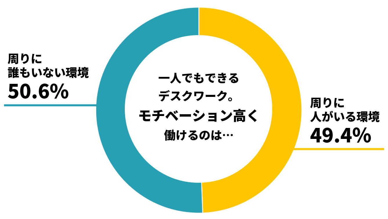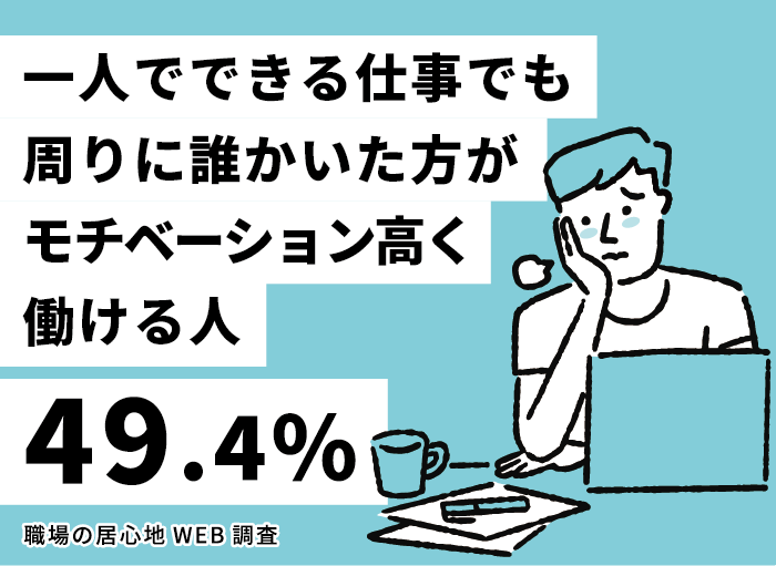 「一人でできる仕事でも、周りに誰かいた方がモチベーション高く働ける」人が49.4%。