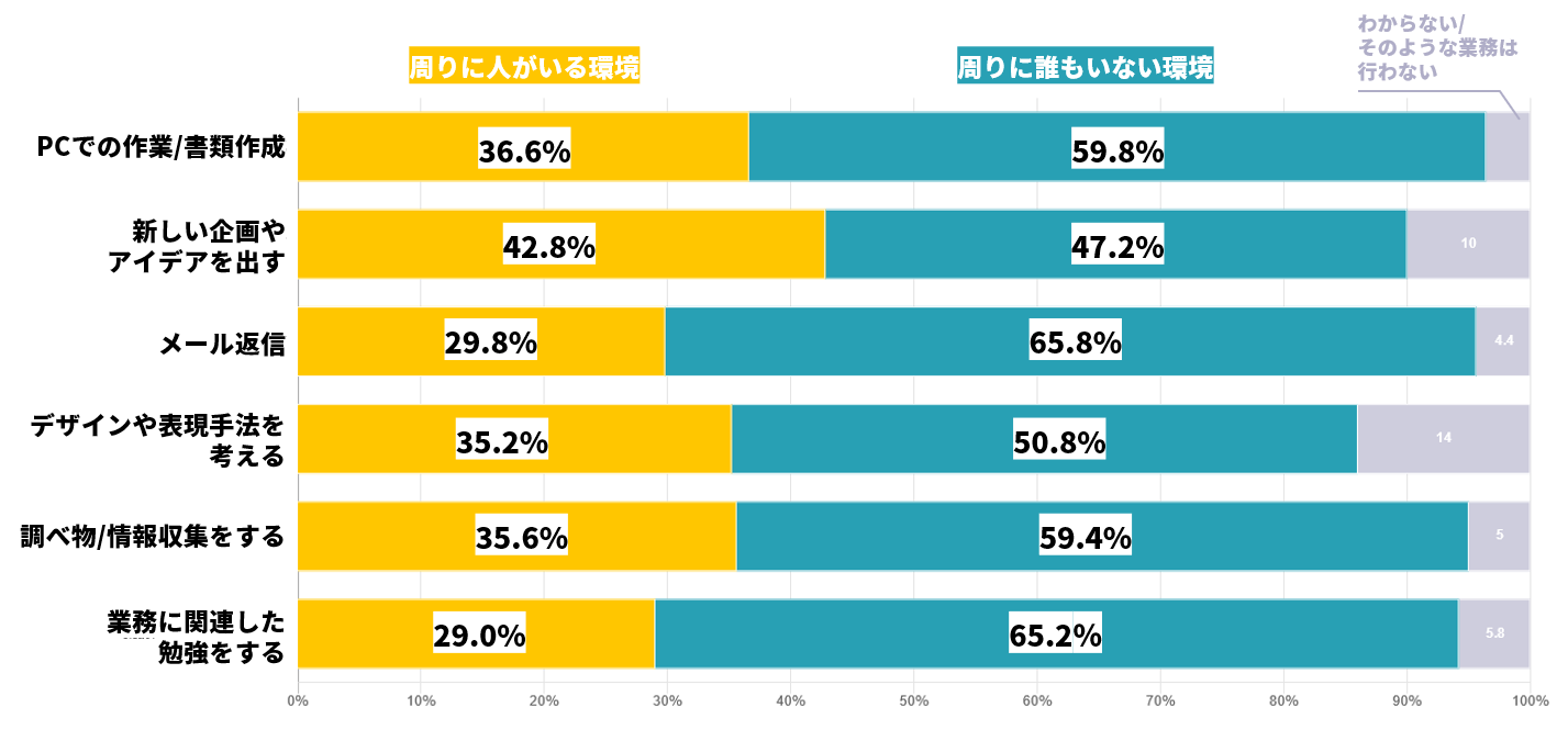「一人で仕事をしたい。人目が気になって集中できないから。わからないことがあっても電話やメール、チャットなどを使えばいいので」