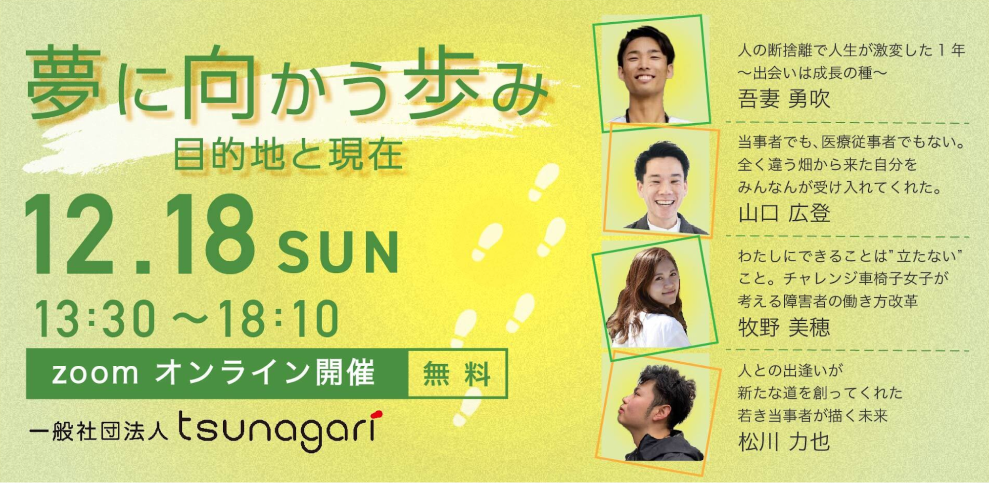 今回は「夢に向かう歩み」をテーマに、理学療法士・起業家・車椅子インフルエンサー、脳卒中当事者の4名の方にご登壇いただきます。