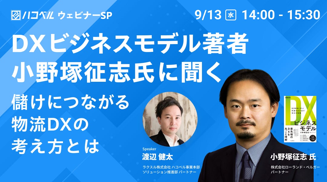 【9月13日(火)ハコベルウェビナー開催】「DXビジネスモデル」著者小野塚征志氏に聞く儲けにつながる物流DXの考え方とは