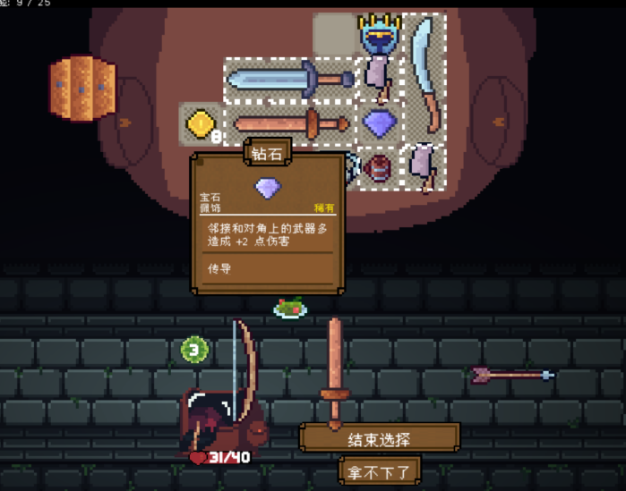 ダイヤモンドなどいくつかのアイテムは周りのアイテムに強化効果などを与えることができます。何百種類もある武器やアイテムを組み合わせて、最大限までポテンシャルを引き出しましょう。