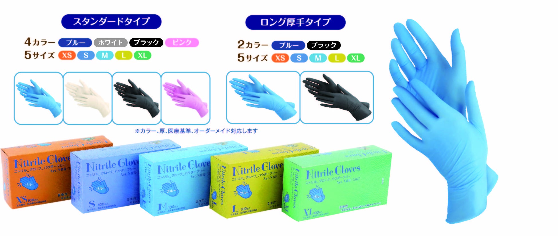 2020年新型コロナウイルスの感染拡大にともない、スーパーマーケット・食品製造・食品加工、パン屋、工場、医療・病院・介護、研究室、家事、清掃、厨房機器メンテナス、印刷業、塗装作業、バイオ産業、半導体産業に必要な「ニトリル手袋」が不足していました。