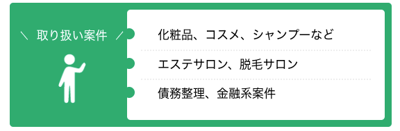 現在の取り扱い可能案件は女性向け化粧品・コスメを中心に多岐にわたり
