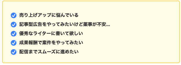 また、無料で作成の記事内容に関しては弊社内での有資格者による薬事チェックにて