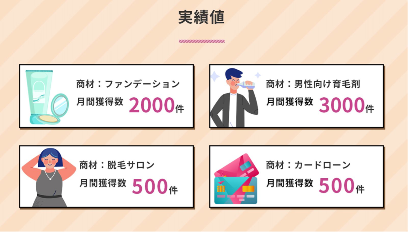 ジャンルにとらわれず単月数千件単位での獲得数を誇る案件を数多く取り扱っております