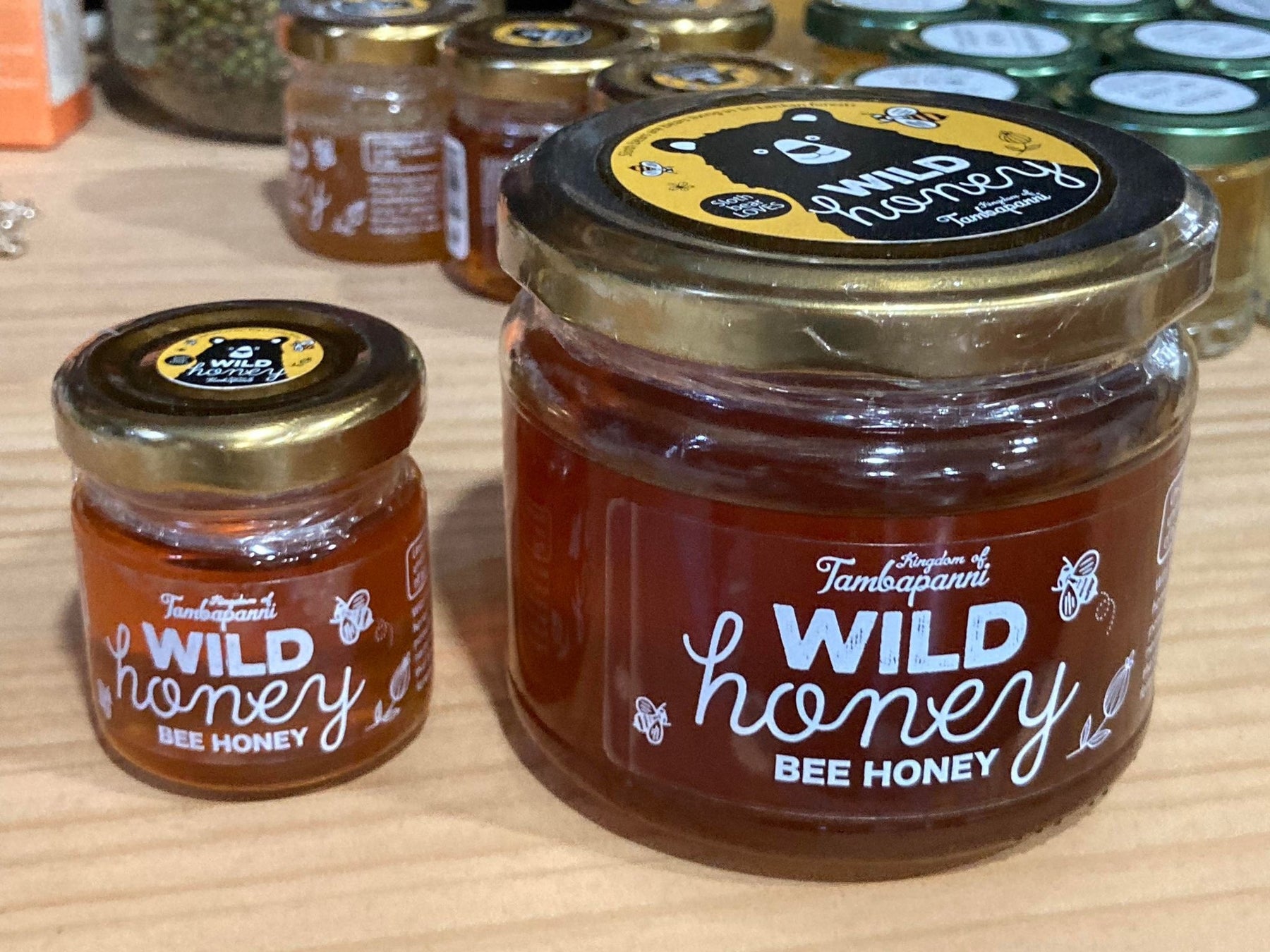 スリランカといえば昔の国名から名付けられた『セイロンティー』という紅茶が特産物として有名ですが、外貨不足のために化学肥料が手に入らず、生産が困難になっています。そのため、熱帯林で収穫できる自然産品の「キトルシロップ」や「キングココナッツオイル」作りに乗り換える紅茶農家が増えています。肥料のいらない森の自然の花からミツバチが採集した蜂蜜「Wild Honey」作りも盛んになったそうです。