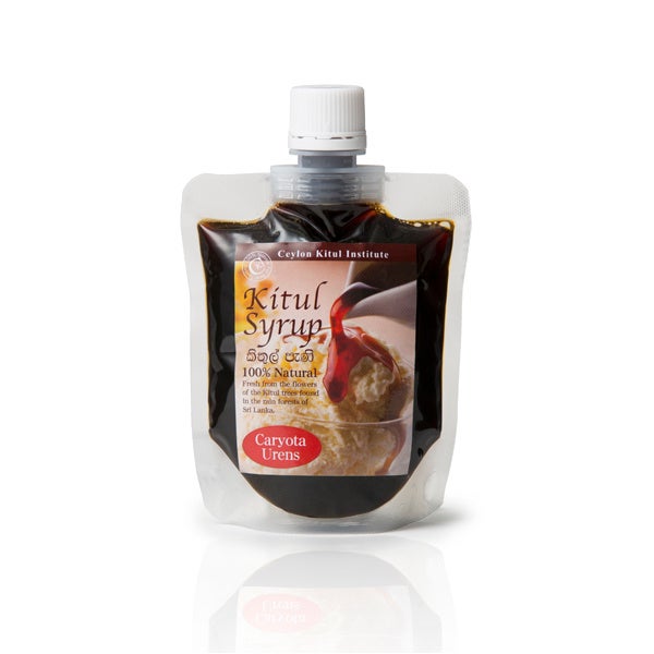 キトルシロップはスリランカに自生するキトルヤシの花から取れる花蜜を煮詰めた天然のシロップです。味はメープルシロップに似ていますが、薪で煮詰めた時の香ばしい香りがプラスされているので、煮物の隠し味に使っている和食のシェフもいる食品です。樹李亜インターナショナルのもののように、全く砂糖を使わずに煮詰めて製造されたキトルシロップは、日本国内はもちろん、現地スリランカでも探すのが困難です。