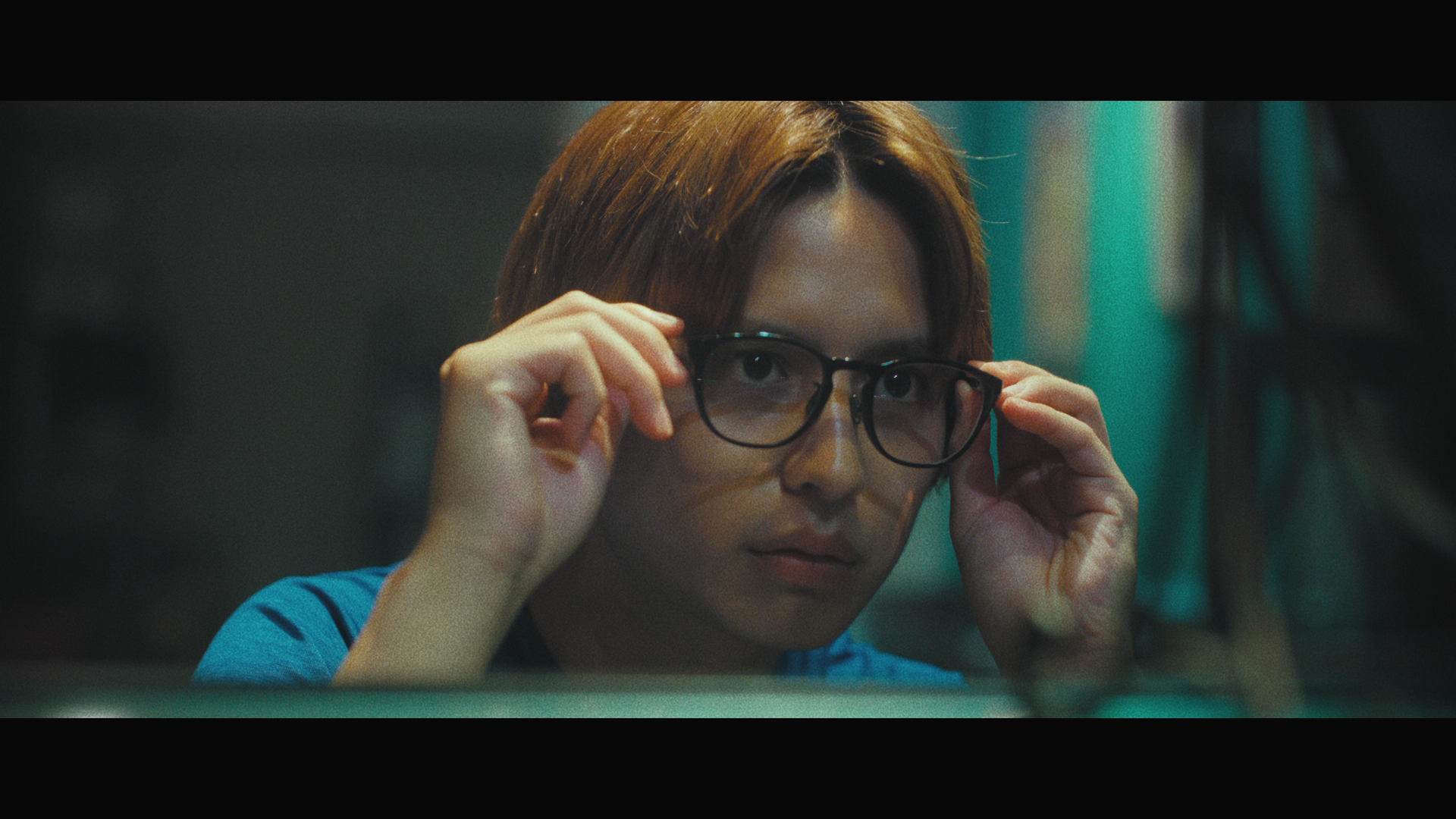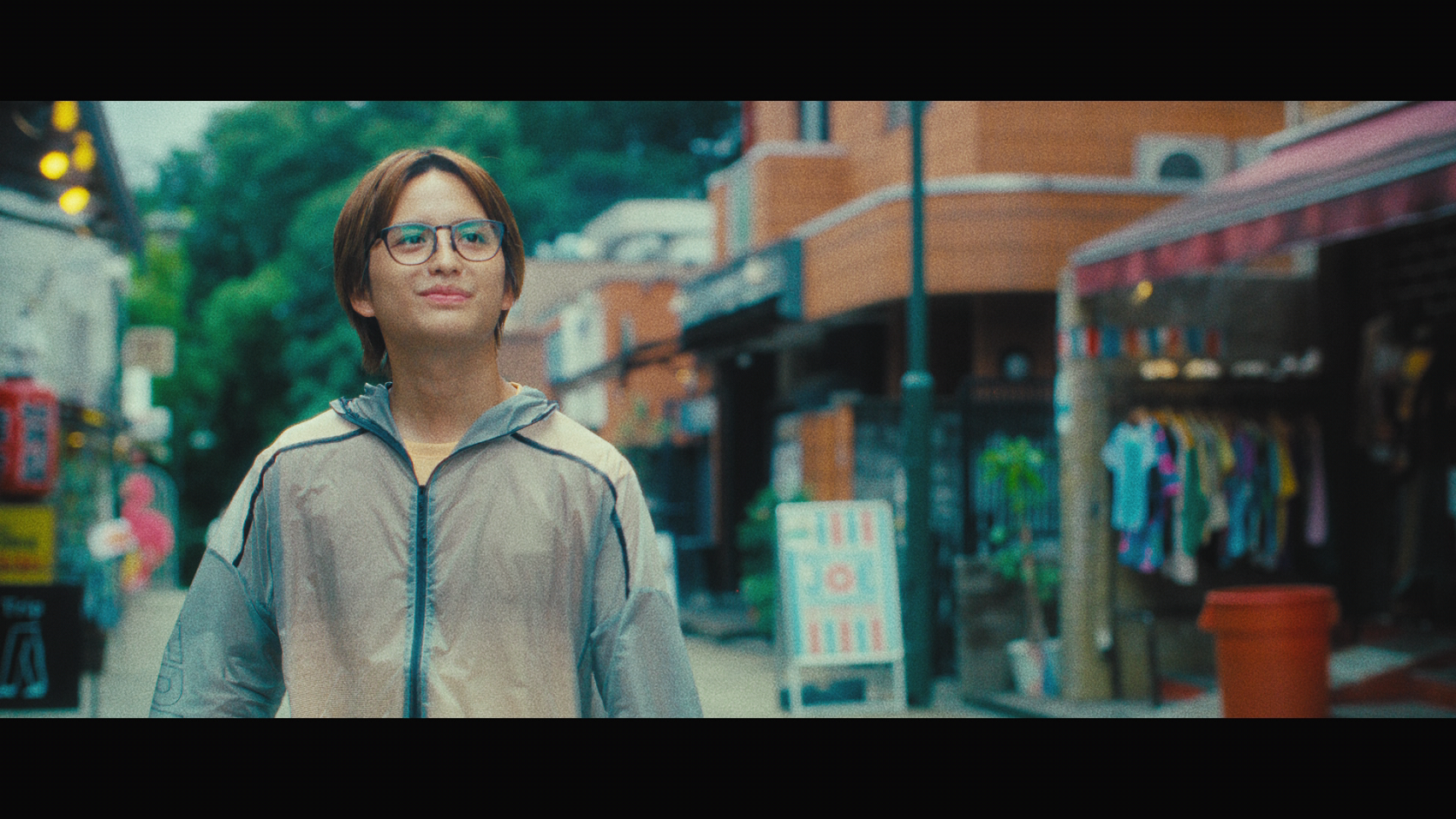 中島健さん演じる男性は、ランニング中。少し浮かない表情をしています。カフェに立ち寄った後、歩いているとメガネ店が見え、入店。店内でメガネを一つ選び、かけてみることに。その瞬間店内の灯りが消え、男性がライトに照らされ、浮かびあがりました。