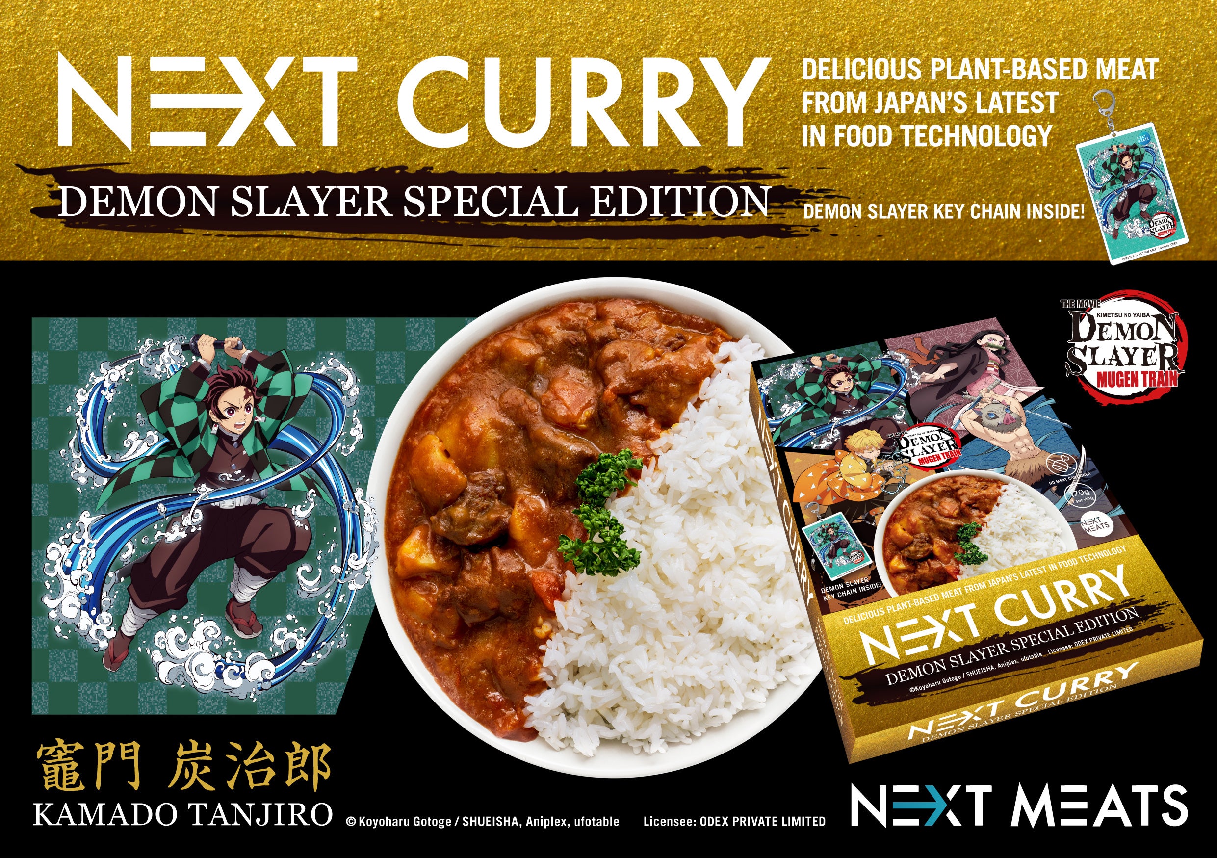 世界的に急成⻑している植物性代替⾁市場で⽇本の焼き⾁テクスチャーを武器に世界を舞台に展開しているNextMeats社と2020年最⼤のヒットである『劇場版「⻤滅の刃」無限列⾞編』のコラボ商品(インスタントカレー)をシンガポールで実現。カレーには⻤滅の刃のメインキャラクター達の限定版アクリルキーホルダーが各1個同梱され、シンガポールでも急速に店舗数を拡⼤しているドンドンドンキ(⽇本名ドンキホーテ)にて独占限定販売。⽇本のコンテンツがもっとも⼿に取ってもらいやすい販売チャネルとの連携も実現しました。