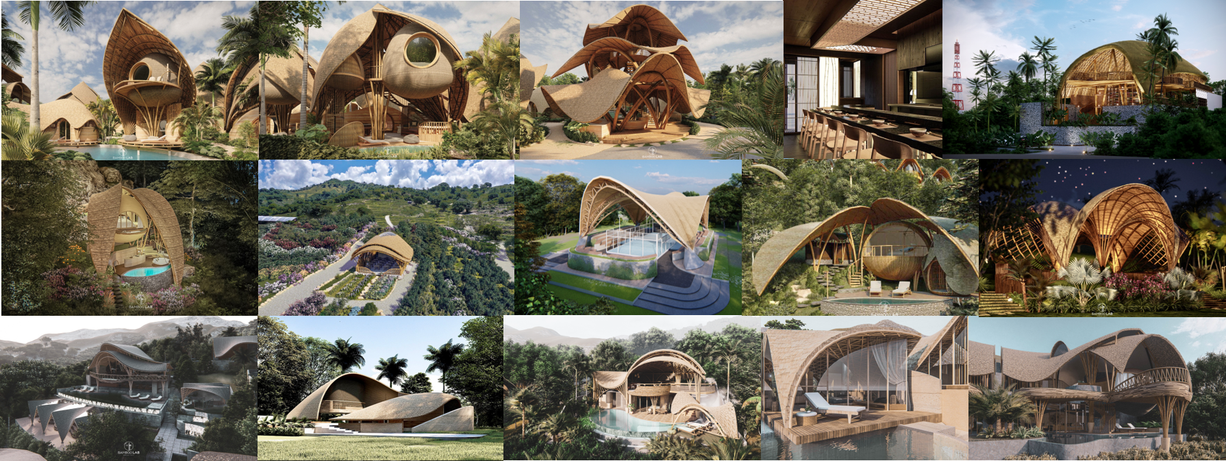 世界でも珍しいBambooで造られた大型のレストラン施設です。建物の構造からディテール全てをBamboo技術を駆使し造られたBamboo建物は通常の建築物とは大幅に異なり、唯一無二の存在、一つのアート作品とした大型Bamboo建築物です。