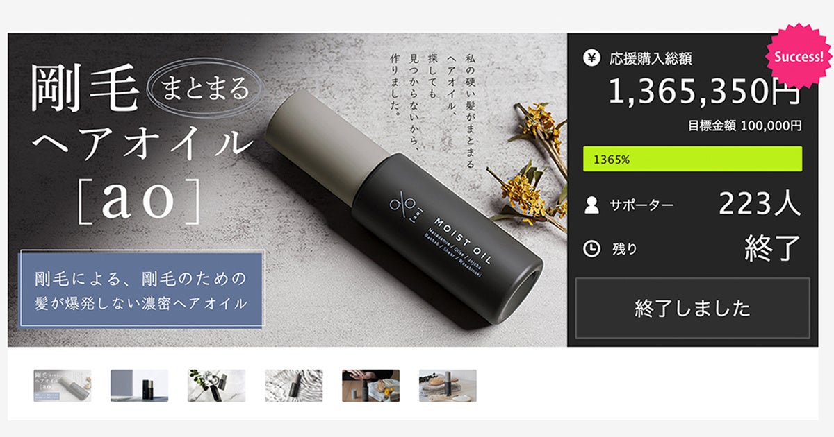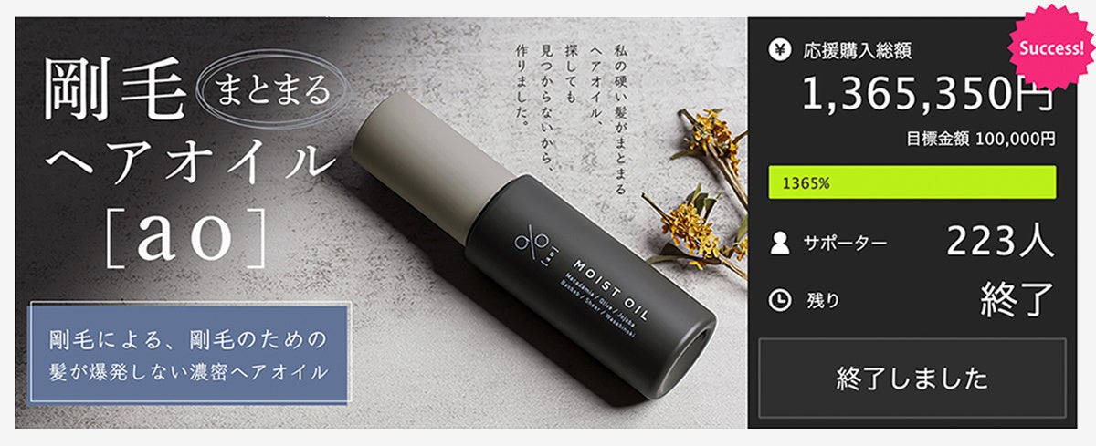 Makuakeで1365%達成!就寝前に塗るだけ "剛毛専用" ヘアオイル、ao【碧モイストオイル】の一般発売を開始しました。