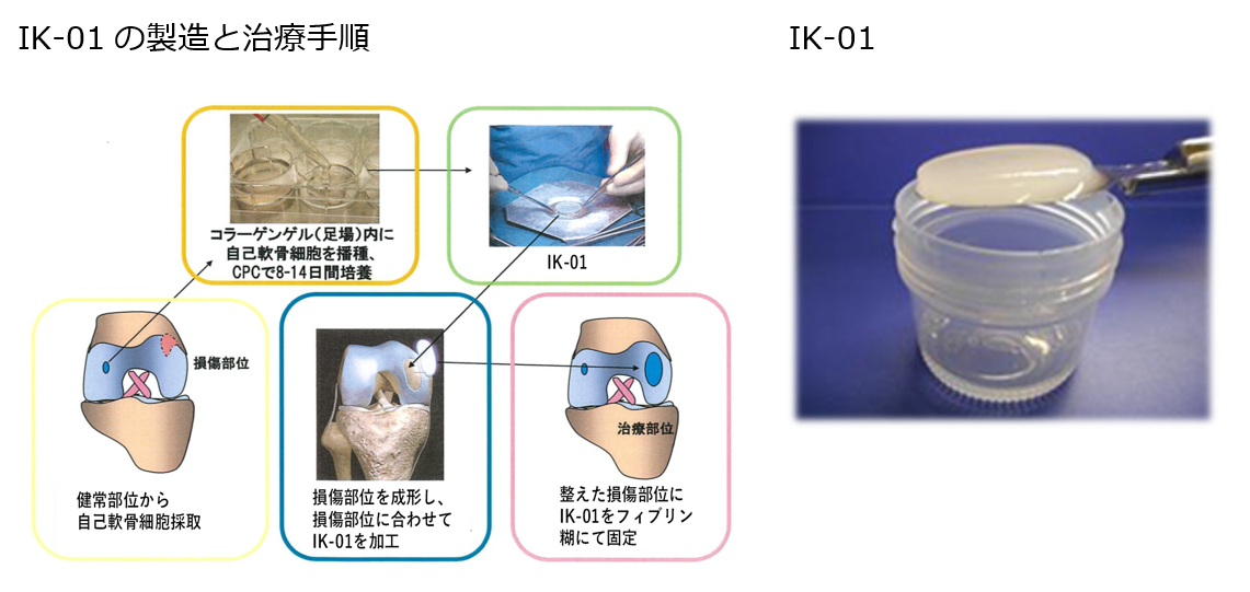 今回の資金調達により、当社が神戸医療産業都市推進機構(FBRI)と共同開発を行っている自己軟骨細胞加工製品(開発コード:IK-01、以下「IK-01」)の変形性膝関節症を対象とした第2相探索的試験の加速を図ると共に、今年9月1日に保険収載予定である角膜上皮幹細胞疲弊症における眼表面の癒着軽減を目的とした再生医療等製品「サクラシー®」の販売体制を整えて参ります。