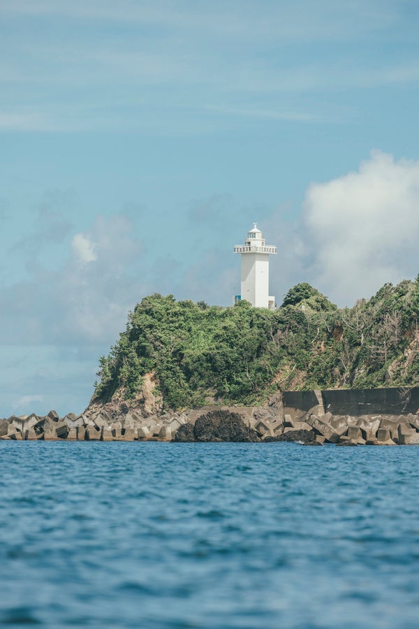 志摩半島の的矢湾入り口にある安乗岬に位置する全国的にも珍しい四角形の白亜の灯台です。灯台の周りは伊勢志摩国立公園に指定されており豊かな自然が感じられ、平成25年には国の有形文化財に指定されました。のぼれる灯台は全国に16基、志摩市にはそのうちの2基があります。そして2023年4月1日には開業150周年を迎える歴史ある灯台です。灯台150周年を記念した行燈ワークショップを地域の人たちと制作し、灯台に続く道をてづくりの道行燈で灯す道行燈(みちゆきとう、みちあんどん)展示や、今回だけの夜間参観やライトアップもありますのでお楽しみに。