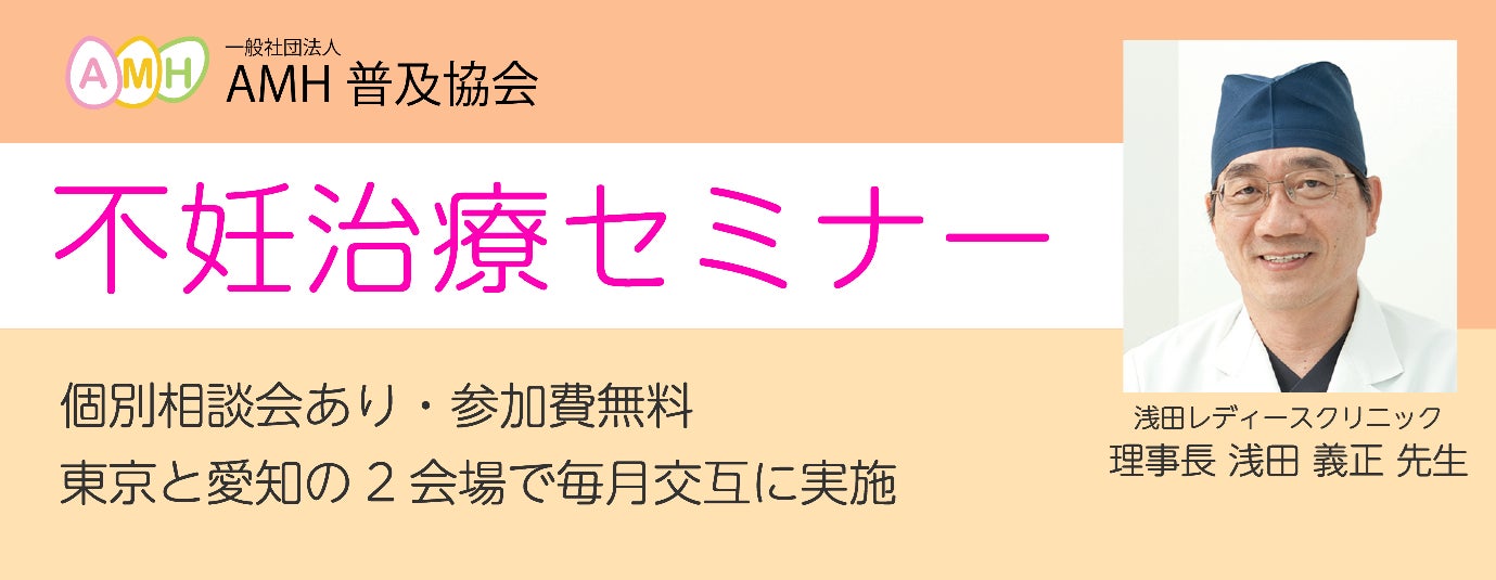 2022年4月の不妊治療の保険適用範囲拡大により、不妊治療や妊娠について改めて意識される方も増加しています。こういった現状をうけ、AMH普及協会は、不妊治療や妊娠に関する知識をより深めてもらう目的で「不妊治療セミナー」を東京と愛知の2会場で毎月交互に実施することを決定いたしました。第1回は東京の会場で8月20日(土)に開催いたします。当日は顕微授精の第一人者であり、浅田レディースクリニックの理事長を務める浅田義正医師への、個別相談も10組限定で受け付けます。