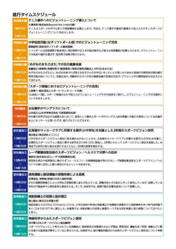 大会では、スポーツビジョンの活用に関する現場からの報告から、ビジョントレーニングの効果に関する最新研究報告までスポーツビジョンを健康づくりに役立てるヒントが見つかります。当日は講演者へ直接質問することもできます。