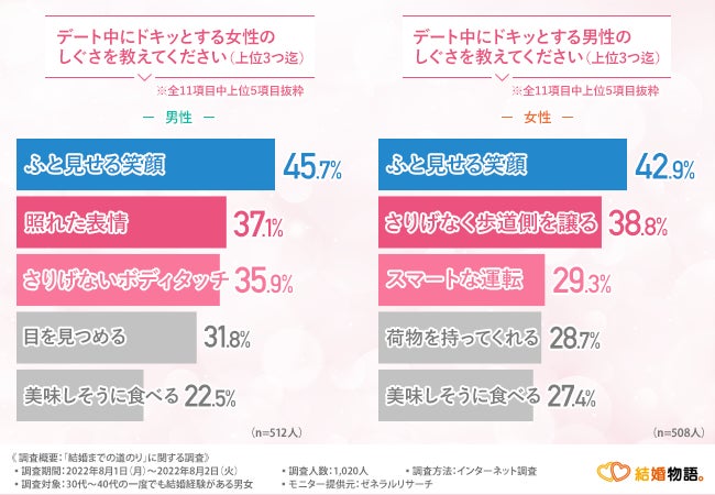 また、先程の調査では、ふと見せる笑顔に惹かれる方が男女ともに多いことが分かりました。