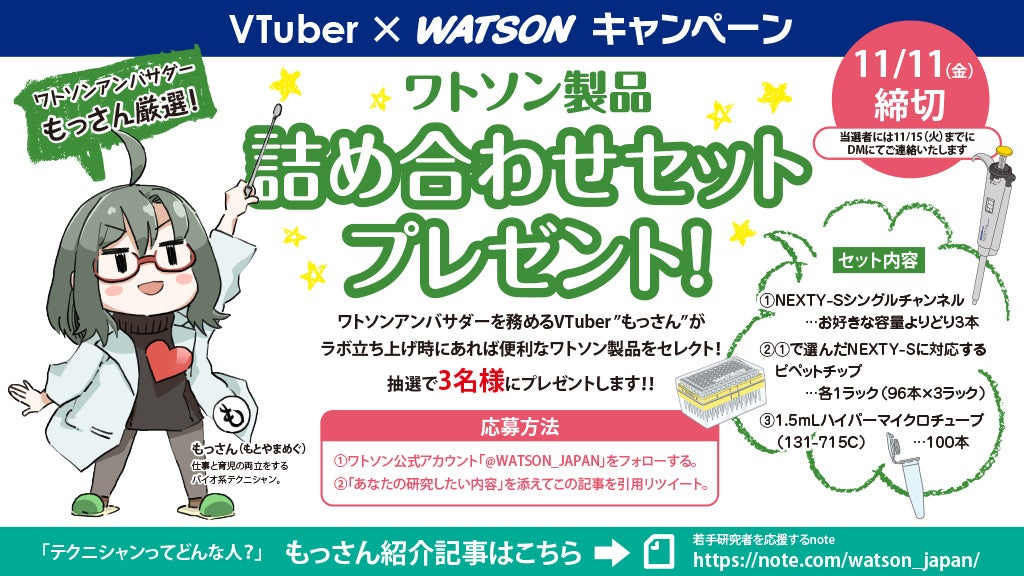 若手研究者、テクニシャンの啓蒙・応援!WATSONアンバサダープレゼントキャンペーン『テクニシャンってどんな人?』