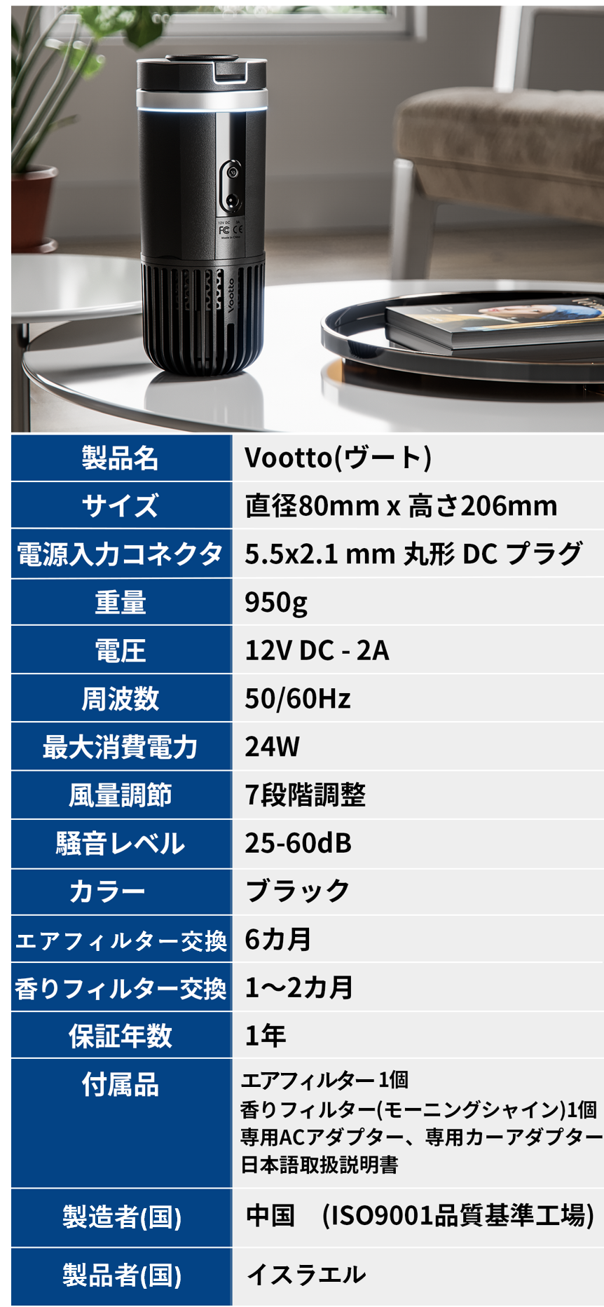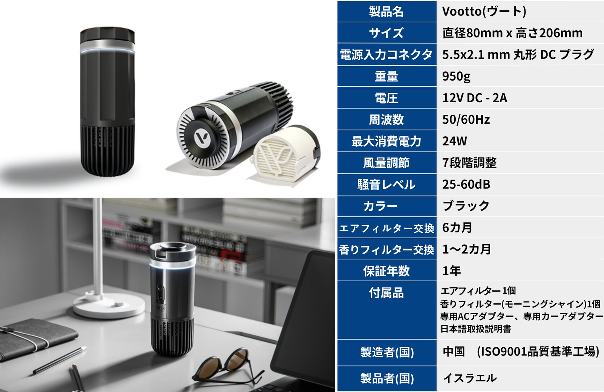 イスラエル発!脱臭、清浄、香り立ち1台3役コンパクト空気清浄機Vootto(ヴート) 先行予約発売開始