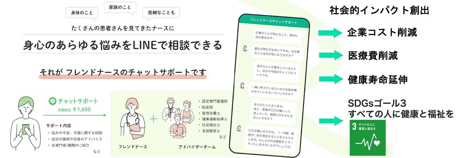 福岡市⺠を対象に⾏った5ヶ⽉間の実証実験で⽣まれた「フレンドナースチャットサポート」のサービスを正式リリース臨床経験20年のフレンドナースがあらゆるお悩みをLINEでサポート