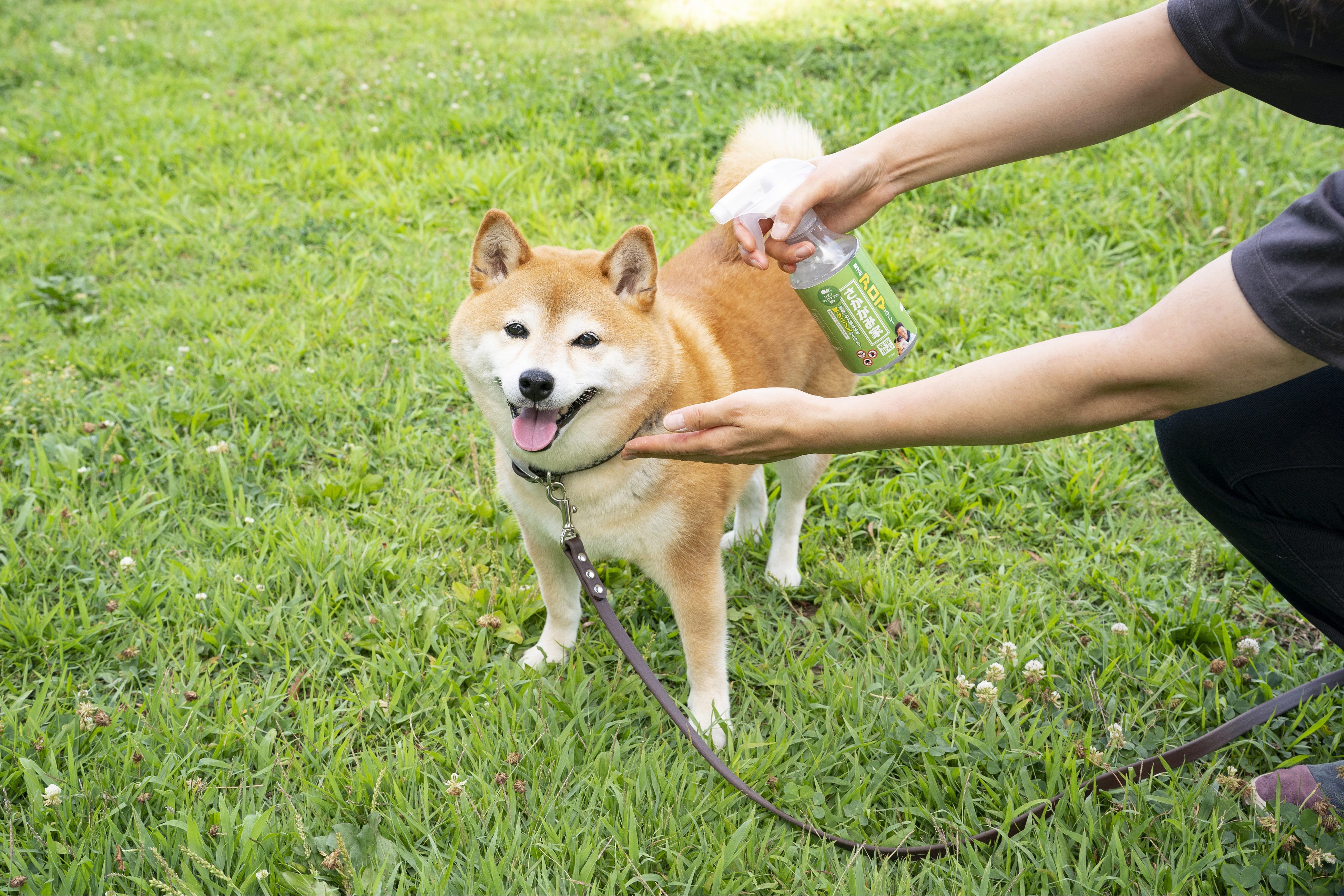 虫が嫌う植物成分を配合した、愛犬の体を虫から守るアロマスプレーです。アルコールやDEETは使用していません。お散歩などの外出前に、愛犬の皮膚に直接吹きかけることができるだけでなく、愛犬が使用するクッション、カドラー、バッグ、毛布などにもご使用いただけます。