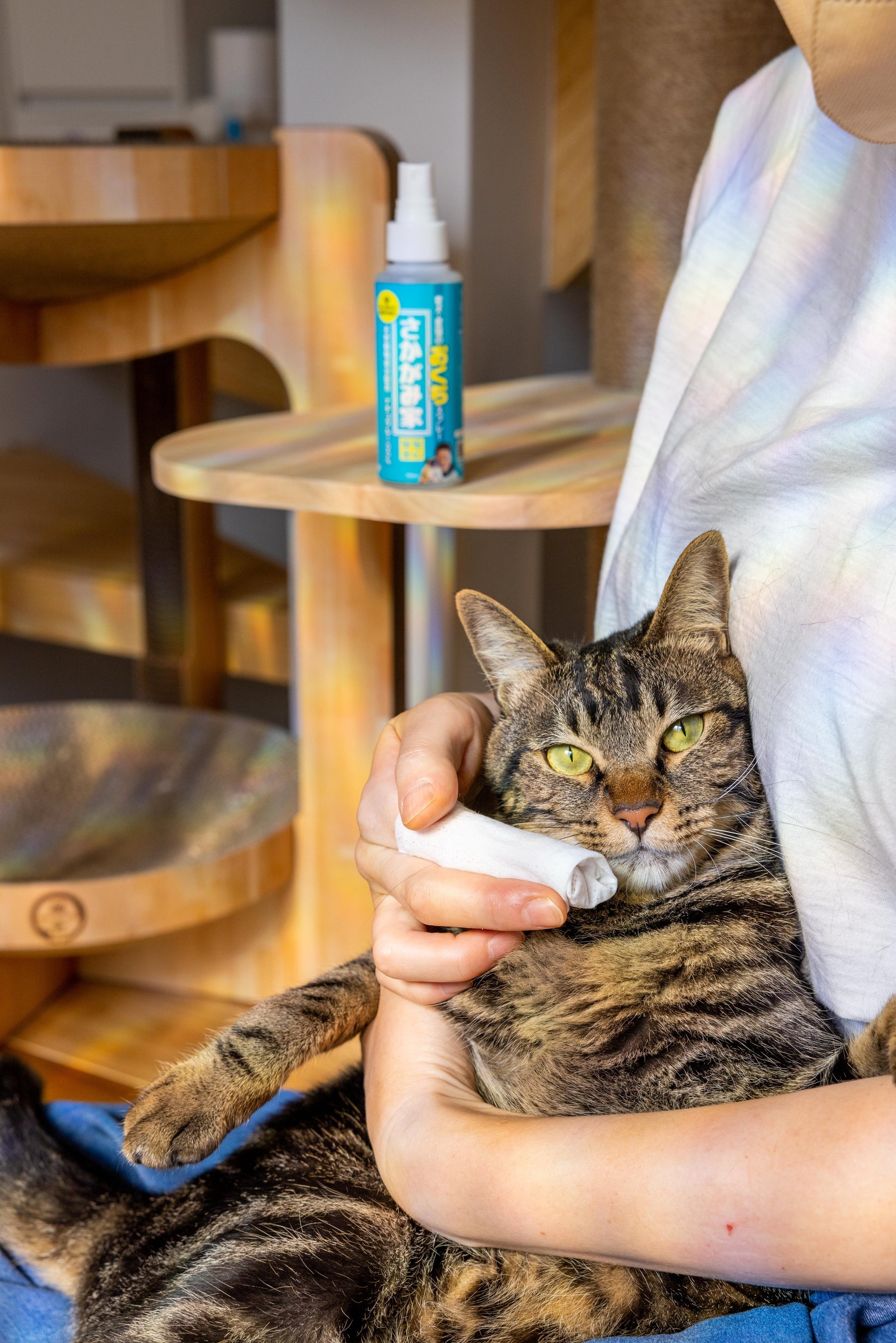 今回発売するシリーズでは、ボディやおくちのケア等を行う「お手入れ用品」の3種と、トイレやお部屋の「お掃除・消臭用品」の2種、計5種をご用意しました。開発にあたってこだわったのは、愛犬や愛猫に対して「安心・安全」なものを提供したいという思いです。植物などの天然成分と水溶性抗菌剤を使用し、ノンアルコールで安心してご使用いただけます。また、“清潔好き”“潔癖キャラ”でも知られる坂上忍。保護ハウスで暮らす犬や猫たちが安心で快適に過ごしてほしいという思いから、ハウス内ではこまめな掃除を欠かさず、衛生管理が徹底されています。なによりもまず、「犬や猫を清潔にし、清潔な環境を提供することが第一」。そんな思いもこの製品には込められています。