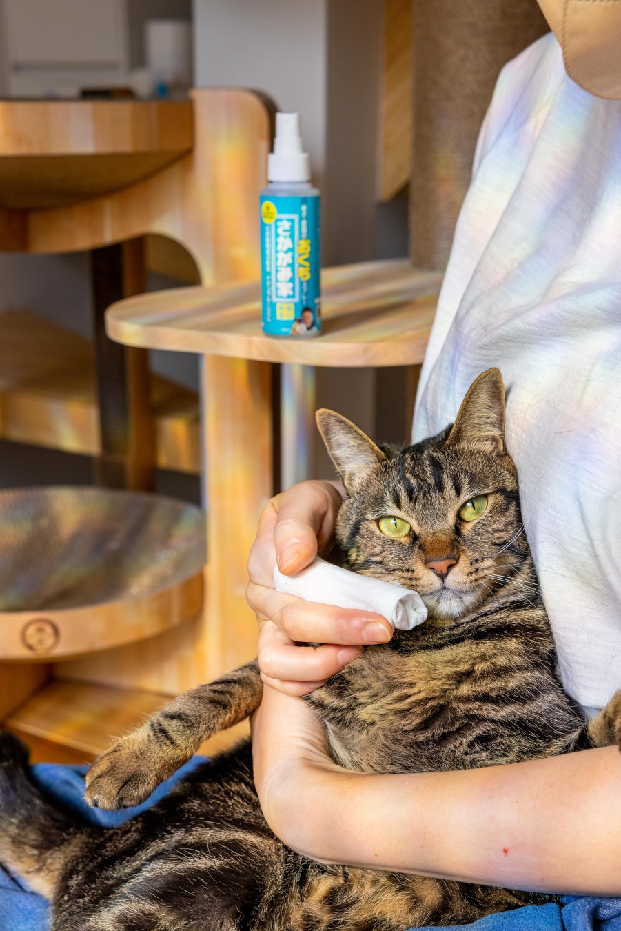 高機能アルカリイオン水に天然成分を配合。愛犬・愛猫の口内の汚れを洗浄し、お口のニオイを軽減させるプレーです。スプレーしたガーゼや指サックで歯茎をマッサージすることで、歯や口腔内の健康を維持します。