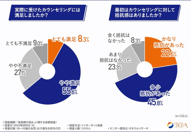 そこで、「最初はカウンセリングに対して抵抗感はありましたか?」と質問したところ、6割以上の方が『かなり抵抗があった(22.6%)』『多少抵抗があった(45.8%)』と回答しました。