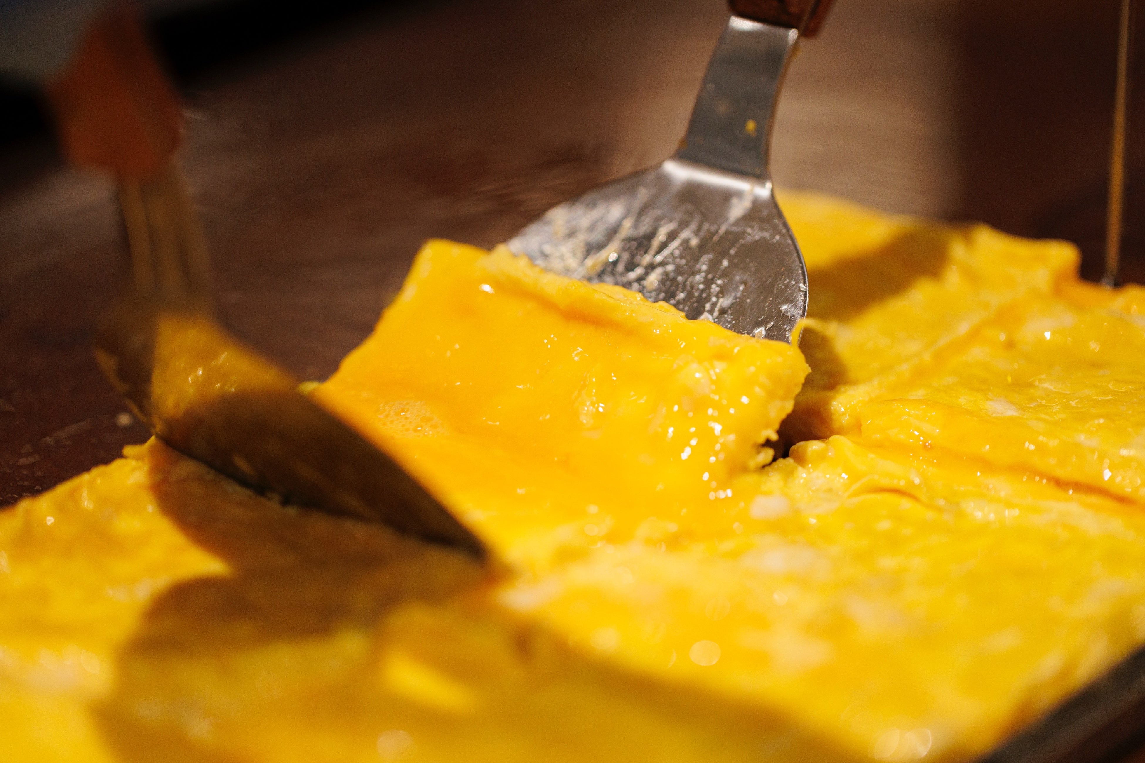 採れて4日以内の新鮮なたまごだけを使用。黄身と白身のバランスが良く、玉子焼きに最適なL玉のみを銅板でふんわりと焼き上げます。