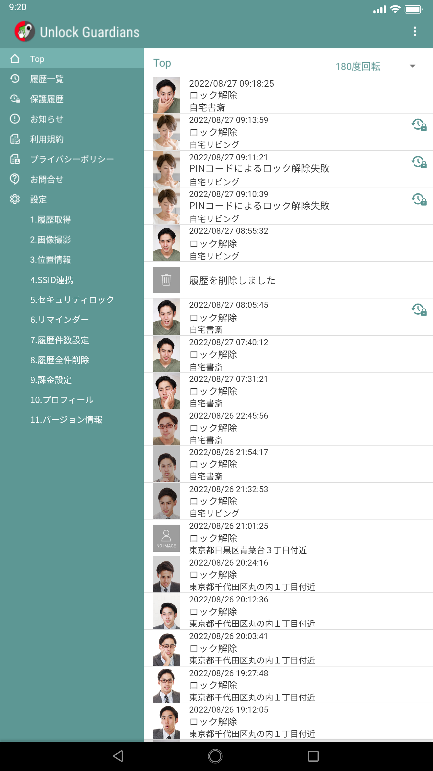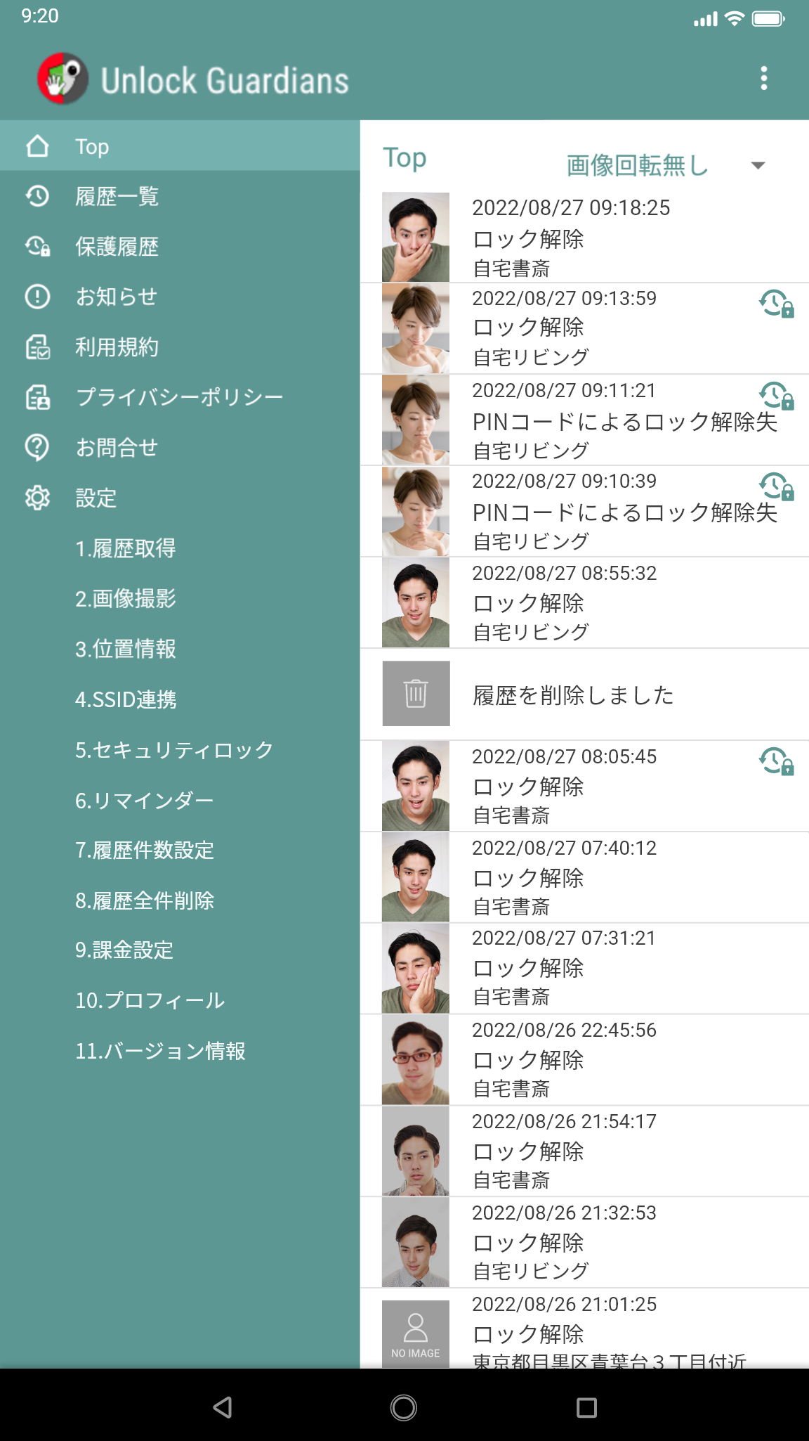 Unlock Guardians(アンロックガーディアンズ)は上記の様な問題を解決する手段として、24時間365日、常にスマホやタブレットのロック解除操作者を日時分だけではなく顔画像や位置情報まで記録・確認できる様にすることで不正な侵入を防止する事を目的として開発されたAndroid向けアプリケーションです。