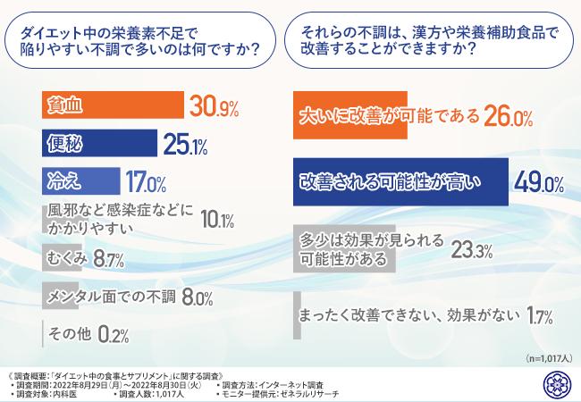 - ダイエット中に起こりやすい体の不調、漢方や栄養補助食品で改善可能?
