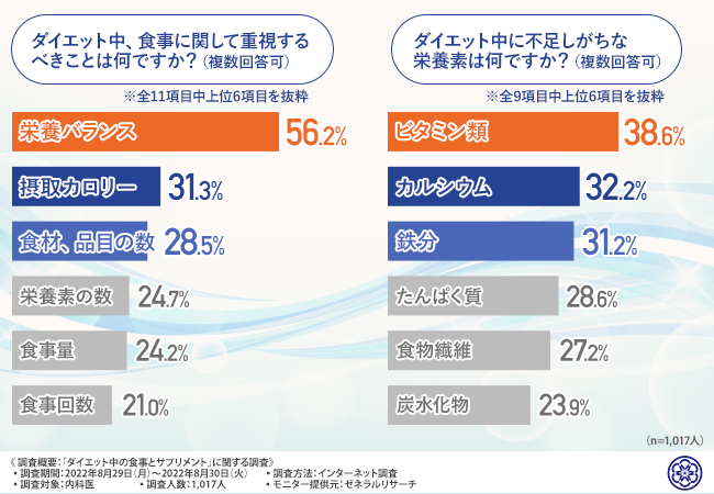 【内科医1000人にダイエットに関する調査】ダイエット中の食事は栄養バランスが大事!ダイエット中に不足しがちな栄養素とは?