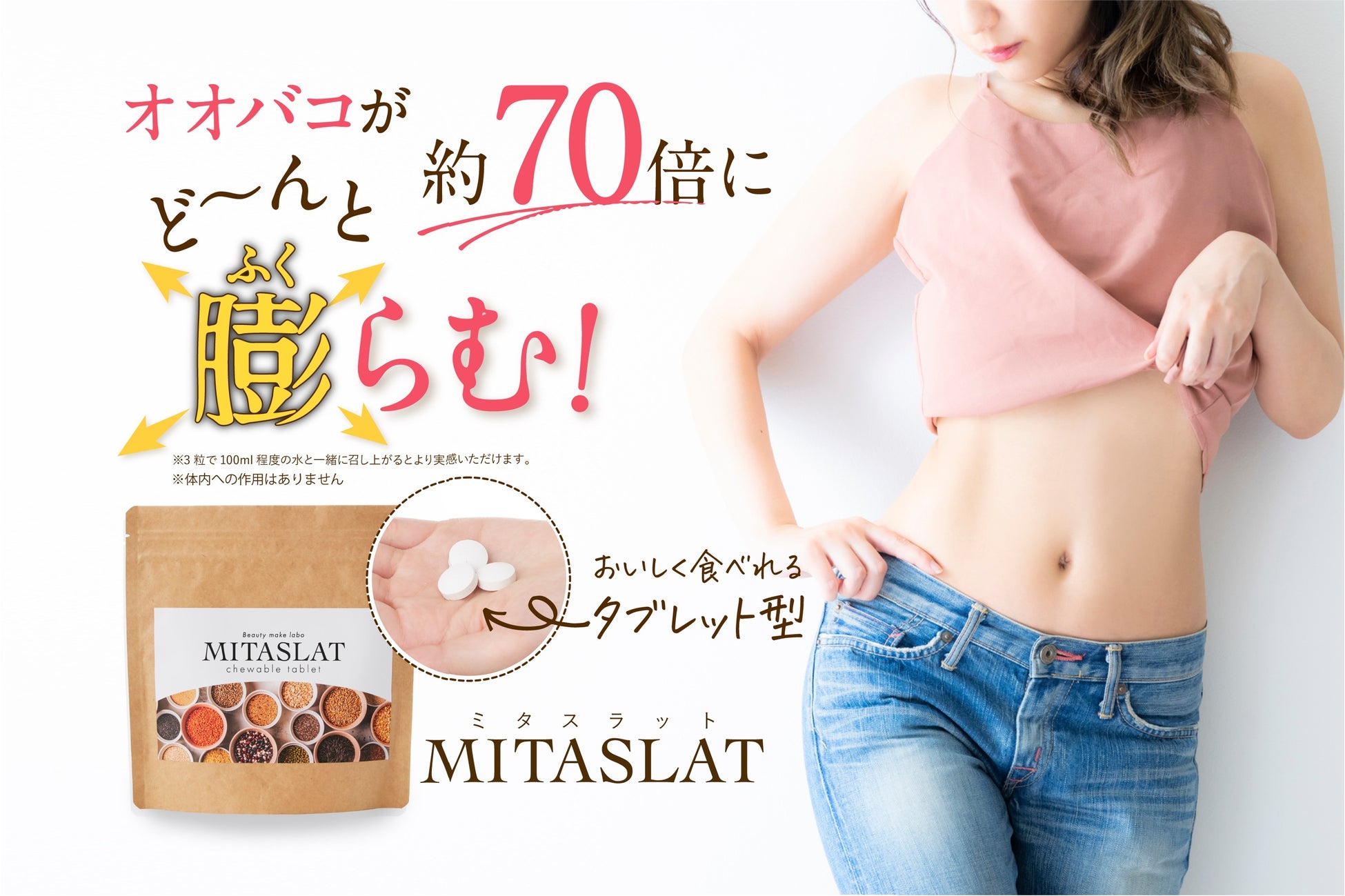 MITASLAT(ミタスラット)には3粒で約350mgも配合しているので、お腹の中で食パン1枚以上に膨らみます。