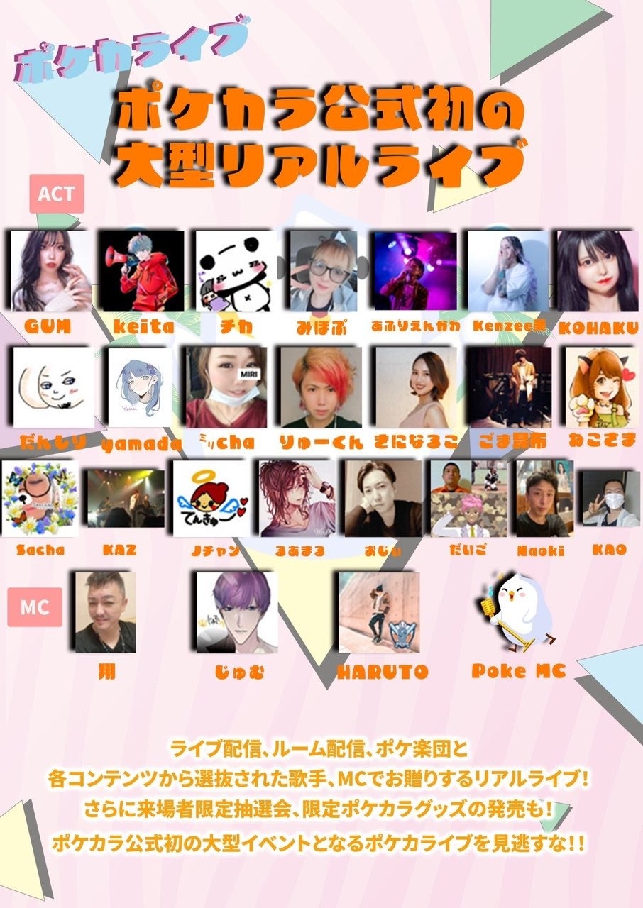 今回のイベントは、ポケカラによるバーチャルとリアルの融合をテーマに各部門で選出されたユーザーが出演するオフラインライブとアプリ内ライブ配信を組み合わせた次世代型ライブエンターテインメントとなります。