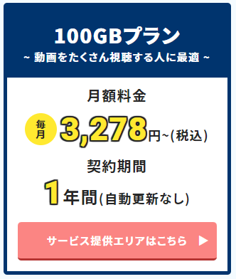 | 容量・速度制限 | 100GBまで容量・速度制限なし |