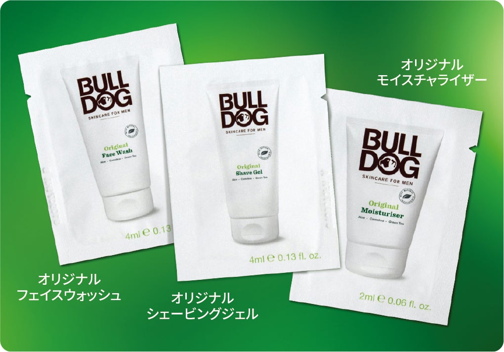 BULLDOG公式オンラインストアのオープンを記念し、キャンペーン期間中、お申込みいただいた方の中から毎週5,500人(合計27,500人)に簡単3ステップのスキンケアが可能な、洗顔・シェービングジェル・保湿のサンプルセットをプレゼントいたします。また、キャンペーンにご応募いただいた方全員に、商品購入時に使える素敵な特典もご用意しています。