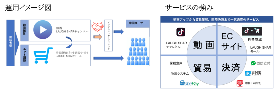 両国間の文化交流の懸け橋となることを目的に、この度、「抖音/Douyin(ドウイン)」に「LAUGH SHARE CHANELラフ・シェア・チャンネル)と「LAUGH SHARE SHOP(ラフ・シェア・ショップ)」の運営を開始しました。