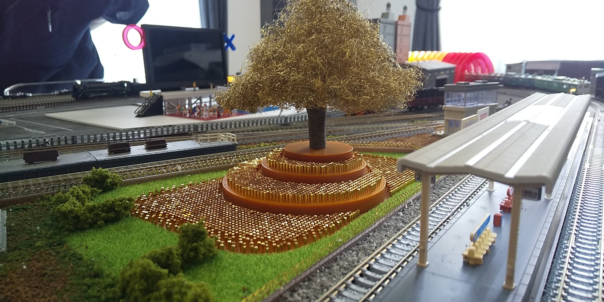 地味な検査用部品が、精工かつ巨大な「電車と街のジオラマ」に!