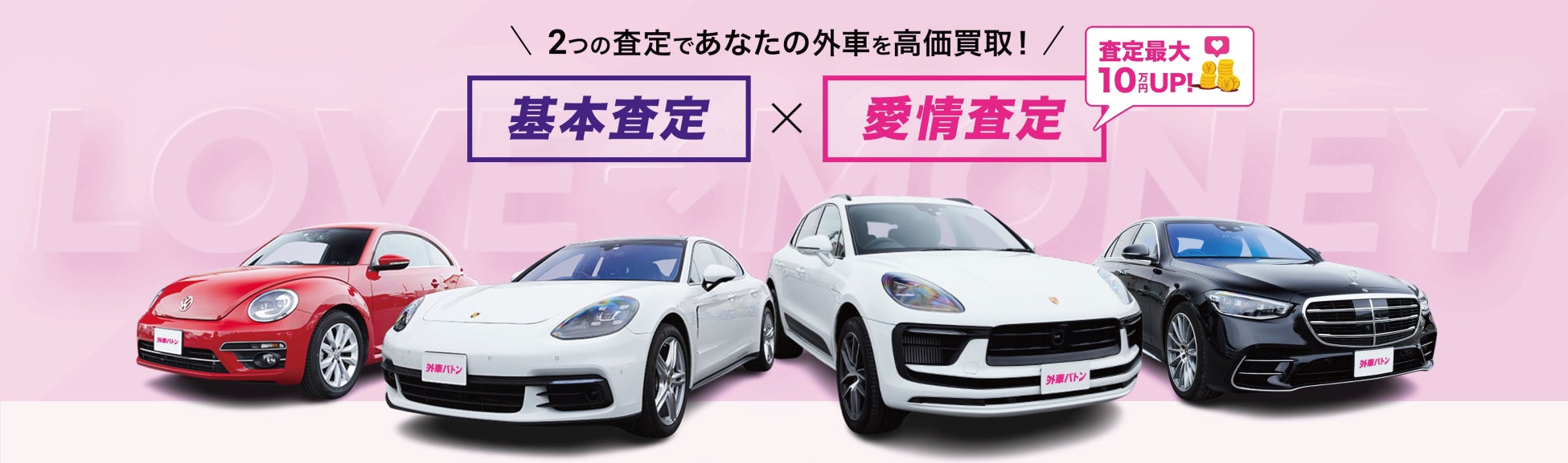 愛情査定は、お客様が愛車に注いだこだわりや思い出を「価値」とし、基本査定の金額から査定額を上乗せするサービスです。査定ご依頼時に基本査定の情報に加えて、お客様が愛車に注いだ愛情や愛車との思い出のエピソードをご入力ください。外車バトン独自の評価基準に準じて、5段階で評価し、最低2万円以上の査定額アップをご提案します。