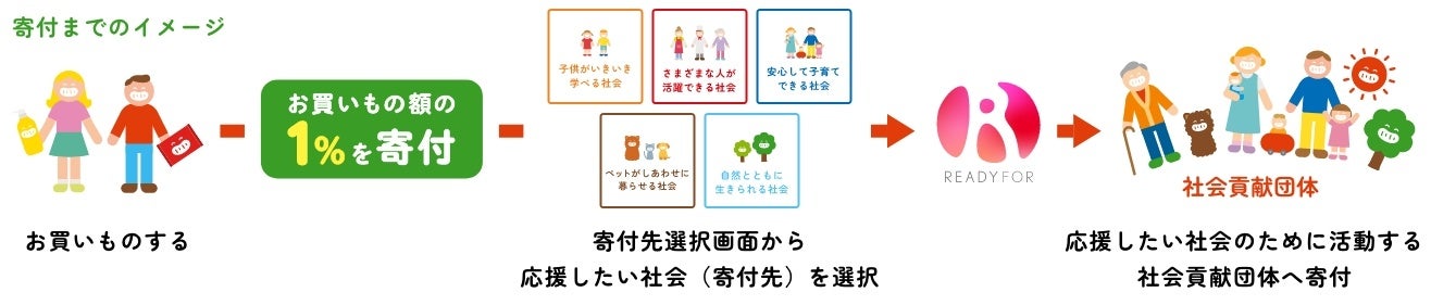 寄付先をご自身で選定し、社会を自身の消費行動で少しずつ変えていく体験をしていただくことで、“お買いもの”をする際に、商品の品質・価格だけでなく、社会への関わりを考えるきっかけになればと考えています。