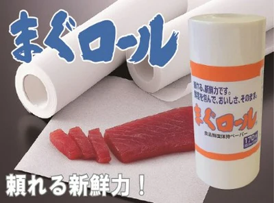 まぐロールは、特に冷凍マグロ・生マグロの解凍に最適な、食品鮮度保持ペーパーです。