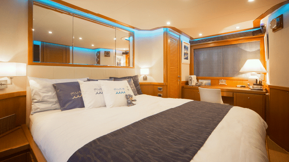 船内に一歩足を踏み込めば、そこは日常から切り離された贅沢な空間。波間を漂う船体から、装飾・備品に至るまで、細部にも一切妥協しない造りは船上ということを忘れてしまうほど。地上から隔絶された完全なるプライベート空間で、より特別な別荘ステイをお楽しみいただけます。